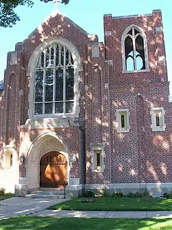 The Zion Lutheran Church (now known as Mision Pentecostal John 3:16) is a historic Lutheran church building at 132 Glenbrook Road in Stamford, Connecticut. The red brick Gothic Revival structure was built in 1925 by a German immigrant congregation founded in 1897. It is the city's only red brick church. The main facade is dominated by a square tower on the right, which rises only to the height of the roof gable on the left. The gable stands above a large quadruple window set in a slightly pointed arch, which stands above the main entrance, which is recessed in an arched opening.[2]
