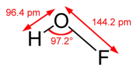 O composto foi estudado na fase sólida por meio da cristalografia de raios-x[1] como uma molécula com um ângulo de 101°. As ligações de O-F e O-H são, respectivamente, de 1.442 e 96.4 pn. A estrutura sólida consiste em cadeias com ligações O-H---O. De notar que as medições na fase sólida diferem das da fase gasosa, as quais são mostradas na ilustração à direita.