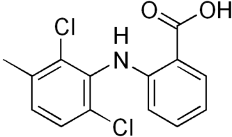 Ácido meclofenâmico( Meclofenamato de sódio, marca Meclomen) é uma droga usada para articulações, dores musculares, artrite e dismenorréia.[1] Ele é um membro dos Derivados de ácido antranílico (ou fenamato) classe de AINE de drogas e foi aprovado pela FDA em 1980.[2] Tal Como os outros membros da classe, é um COX inibidor e impede a formação de prostaglandinas.[3]