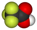 Ele é um ácido carboxílico forte devido a influência dos três átomos de flúor extremamente eletronegativos.