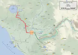 Sua fonte principal era um lago ao norte de Roma chamado Lago Alsietino (em latim: Lacus Alsietinus), atualmente conhecido como Lago di Martignano, com algum complemento do Lacus Sabatinus (Lago di Bracciano). O comprimento, quase todo subterrâneo, é de 22 172 passos (cerca de 32,8 km), com 358 arcos no trecho acima da superfície.