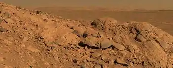 Entre as descobertas pelo Rover Opportunity está a presença de hematita em Marte na forma de pequenas esferas em Meridiani Planum. As esferas têm apenas alguns milímetros de diâmetro e acredita-se terem sido formadas como depósitos rochosos sob água há milhares de milhões de anos. Outros minerais encontrados continham formas de enxofre, ferro e bromo, tais como jarosita. Esta e outras evidências levaram que cientistas concluíssem que "a água líquida foi outrora presente de forma intermitente na superfície marciana em Meridiani, e por vezes saturava a sub-superfície. Porque a água líquida é um pré-requisito chave para a vida, Meridiani pode ter sido habitável por algum período de tempo na "História marciana". No lado oposto do planeta, o mineral goethita forma-se somente em presença de água, ao contrário da hematite. Outras evidências de água foram encontradas pelo Rover Spirit nas "Colinas Columbia".