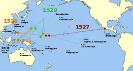 Em 31 de outubro de 1527 zarparão de Zihuatanejo, (México, Nova Espanha) três naves de nome Florida, Espírito Santo, e Santiago, rumo ao Pacífico. Atravessaram o Pacífico e percorreram a costa norte de Nova Guiné, que nomearam Ilha de Ouro, e a 3 de outubro de 1528 chegou às ilhas Molucas só uma das naus.