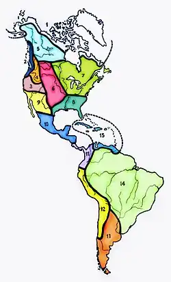 O mapa original das áreas culturais da América proposto por Wissler, 1922[14] incluía as seguntes áreas: