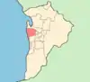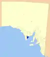 | Cidade de Port Lincoln | Port Lincoln | Eyre Peninsula | 1921 | 30 | 12 | 14 984 | Separado de Conselho Distrital de Port Lincoln em 1921. Proclamada uma cidade em 1971. | ![]() |