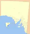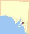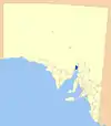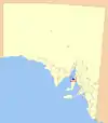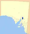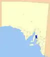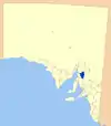 | Cidade de Adelaide | Adelaide | Adelaide Metropolitana | 1840 | 16 | 6 | 1,448 | 23 169 | Capital da Austrália do Sul 1840 Fundada como Adelaide Corporation 1843 Administrado pelo governo colonial e depois uma comissão 1852 Re-estabelecido 1919 Escritório de prefeito levantado a Lord Mayor | ![]() |
