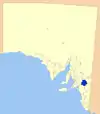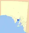 | Vila de Gawler | Gawler | Adelaide Metropolitana | 1857 | 41 | 16 | 552 | 22 618 | A Corporação da vila de Gawler foi estabelecida em 9 de julho de 1857, pois os moradores não estavam felizes pelo fato de a área da vila estar coberta por três conselhos distritais diferentes. | ![]() |