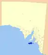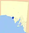 | Conselho Distrital de Elliston | Elliston | Eyre Peninsula | 1887 | 6500 | 2,510 | 1 066 | Mudanças nas fronteiras em 1989 | ![]() |