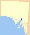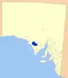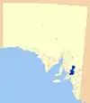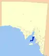 | Conselho Distrital de Cleve | Cleve | Eyre Peninsula | 1911 | 4507 | 1,740 | 1 795 | Separado de Franklin Harbour | ![]() |
