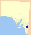 | Conselho distrital de Tatiara | Bordertown | Sudeste | 1876 | 6476 | 2,500 | 6 660 | ![]() | |