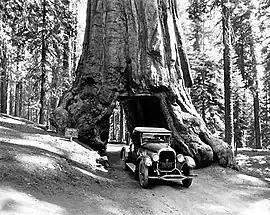 Em 1881, um túnel foi escavado na base de seu tronco, a partir de uma passagem estreita feita pelo fogo, por dois homens que receberam 75 dólares pelo trabalho. A árvore com um túnel se tornou uma atração popular, com viajantes e turistas tirando milhares de fotos em sua passagem, de carruagens, no século XIX a automóveis, até os anos sessenta.