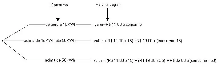 Seja a especificação do processo de cálculo do valor da conta de energia elétrica. Uma árvore de decisão para expressar tal problema seria:
