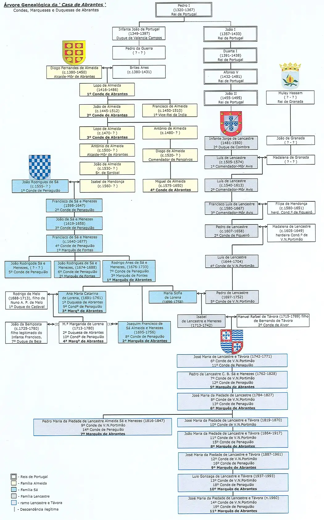 Árvore genealógica da linhagem da Casa de Abrantes desde a sua instituição no século XIV (primeiro como alcaides-Môr de Abrantes e logo depois -1476- como Condes de Abrantes), até ao presente.
