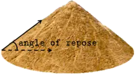 Quando materiais granulares são derramado sobre uma superfície horizontal, uma pilha cônica se forma. O ângulo interno entre a superfície da pilha e a superfície horizontal é conhecido como o ângulo de repouso e está relacionada à densidade, área, formas de partículas e coeficiente de atrito do material. Material com um baixo ângulo de repouso forma pilhas mais planas de material em comparação com material com um elevado ângulo de repouso.