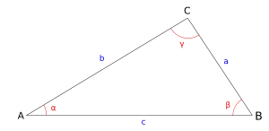 Os ângulos internos do triângulo abaixo são α, β, γ.