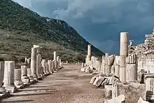 Éfeso (em grego clássico: Ἔφεσος; em latim: Ephesus; em turco: Efes) foi uma cidade grega antiga[1][2] na costa de Jônia, três quilômetros a sudoeste de Selçuk, província de Esmirna, Turquia. Foi construída no século X a.C. no local da capital anterior de Arzaua[3][4] por colonos gregos jônicos. Durante a era grega clássica foi uma das doze cidades da Liga Jônica. A cidade floresceu depois que veio sob o controle da República de Roma em 129 a.C. Durante o período romano, foi por muitos anos a segunda maior cidade do Império Romano, apenas atrás de Roma, a capital do império.[5][6] Tinha uma população de 250 000 habitantes no século I a.C., o que também fazia dela a segunda maior cidade do mundo na época.[6]