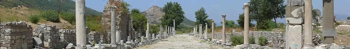 A cidade era célebre pelo Templo de Ártemis, construído por volta de 550 a.C., uma das sete maravilhas do mundo. O templo foi destruído, juntamente com muitos outros edifícios, em 401 d.C. por uma multidão liderada por São João Crisóstomo.[11] O imperador Constantino I reconstruiu boa parte da cidade e ergueu novos banhos públicos, porém a cidade foi novamente destruída parcialmente por um terremoto, em 614. A importância da cidade como centro comercial diminuiu à medida que o seu porto começou a ser assoreado pelo rio Caístro (Pequeno Menderes). Éfeso foi uma das Sete Igrejas da Ásia citadas no livro bíblico do Apocalipse.[12] O Evangelho de João pode ter sido escrito na cidade,[9] onde também se encontra um grande cemitério de gladiadores.