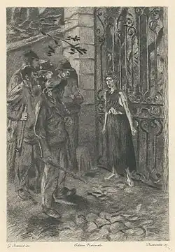 ![]() Éponine intervém para impedir os Patron-Minette de invadir a casa de Valjean. | |
