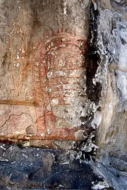 As pinturas estão realizadas a cor vermelha e representam, de um jeito esquemático, figuras humanas entre as quais se destaca uma que porta uma espécie de bastão. Tem diferentes pontos vermelhos, cuja interpretação é desconhecida. Neste grupo de pinturas, muitas delas atualmente quase desaparecidas ou com traços muito débeis, encontra-se a figura de um animal quadrúpede.