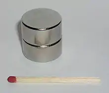 O ímã de neodímio também chamado de 'ímã de neodímio-ferro-boro', ou menos especificamente de 'imã de terras raras' é um poderoso imã feito a partir de uma combinação de neodímio, ferro e boro — Nd2Fe14B — que foi desenvolvida nos anos 1980, em paralelo, pela General Motors[1] e pela Sumitomo special metals.[2] Sua intensidade pode ser medida pelo seu produto energético máximo, em megagauss-oersteds (MGOe) (1 MG·Oe = 7,957 kJ/m³). Essa intensidade varia de 12 a 15, nos ímãs aglomerados de neodímio (bonded magnets) e de 24 a 54 nos ímãs sinterizados.