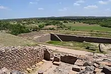 Dolavira, em Guzerate, uma das maiores cidades da Civilização do Vale do Indo, com degraus para alcançar o nível da água em reservatórios construídos artificialmente[21]