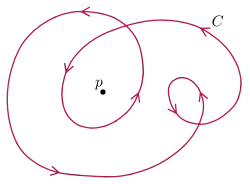 As voltas realizadas em sentido anti-horário contam como positivas, e as realizadas em sentido horário têm valor negativo. Assim, por exemplo, se um objeto percorre a curva em torno de p, descrevendo quatro voltas em sentido anti-horário e uma em sentido horário, o índice da curva ao redor do ponto p é três. O índice depende portanto da orientação da curva, e muda de sinal ao mudar de orientação.