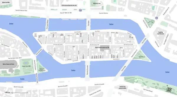 Anteriormente apelidada "ilha dos palácios", em razão do grande número de mansões ali existentes, resultou da reunião da île aux Vaches (ilha das Vacas), a leste, com a ilha de Notre Dame, a oeste. Começou a ser urbanizada durante o reinado de Henrique IV .