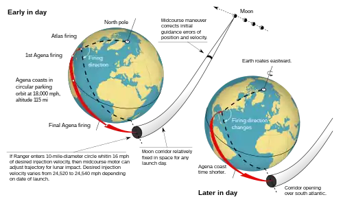 No caso, o veículo lançador coloca a sonda ou espaçonave, (geralmente junto com o último estágio) em órbita, esse conjunto fica flutuando por um tempo, enquanto pequenos ajustes na trajetória são efetuados. Num determinado momento especificamente calculado, o motor do último estágio do foguete lançador ou da própria sonda ou espaçonave, é acionado, impulsionando-a para a trajetória pretendida.