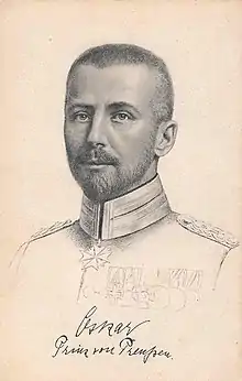 - Este artigo foi inicialmente traduzido, total ou parcialmente, do artigo da Wikipédia em inglês cujo título é «Prince Oskar of Prussia», especificamente desta versão.
