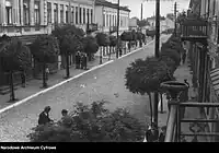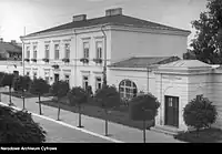 2.ª linha: edifício do Gabinete Distrital e da Câmara Municipal; antigo internato da família Szaniawski, atualmente Museu Regional