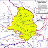 Łuków era uma cidade real da Coroa do Reino da Polônia,[3][4] no distrito de Łuków na Terra de Łuków da voivodia de Lublin,[5][6] na parte nordeste da Pequena Polônia. No século XIII, Łuków estava localizada na Terra de Sandomierz, onde era uma castelania e uma das principais fortalezas.[7]