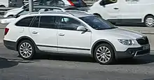 Os níveis de acabamento disponíveis na maior parte da Europa foram chamados de 'Comfort', 'Ambition', 'Elegance', 'Greenline', 'Exclusive' e 'Laurin & Klement' (maio de 2012) - com Laurin & Klement sendo o topo de gama . No Reino Unido, os níveis disponíveis eram ‘S’, ‘SE’, ‘Elegance’, ‘Laurin & Klement’ e ‘Greenline’. Na Suécia, um mercado importante para a Škoda, uma versão do Superb Combi com tração nas quatro rodas e pretensões off-road foi colocada à venda em junho de 2012.[7] Análogo ao Subaru Outback e ao Volvo XC70, era chamado de "AllDrive". Baseado no nível de equipamento Elegance, apresenta revestimento de plástico preto ao redor das partes inferiores do carro e ao redor das rodas. Sua distância ao solo também foi aumentada para 20 mm e uma placa protetora frontal foi adicionada.[8] Na Suécia só estava disponível com três motores diferentes (um a gasolina, dois diesel) e tração nas quatro rodas, mas quando o modelo foi disponibilizado em toda a Europa como "Škoda Superb Outdoor" um mês depois (chegando ao Reino Unido em outubro de 2012) também estava disponível com tração dianteira e na maior parte da gama de motores.[9]