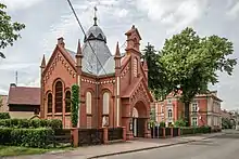 - Complexo do mosteiro pós-agostiniano dos séculos XIV-XVIII, composto por uma igreja paroquial, um antigo mosteiro e internato e um celeiro do mosteiro, está localizado na parte noroeste da cidade velha. Em 28 de fevereiro de 2011, foi reconhecido como monumento histórico,[47] praça Klasztorny: