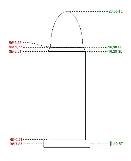 | Diâmetro do Projétil | ,21835 in (5,55 mm) | |