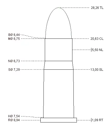 | Comprimento do estojo | ,830 in (21,1 mm) | |