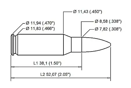 | Diâmetro do Projétil | ,308 in (7,82 mm) | |