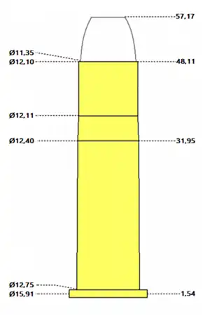- Barnes, Frank C. (2012). Cartridges of the World. [S.l.]: Gun Digest Books. p. 153. ISBN 1440230595