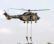 Laço rápido de um Atlas Oryx da Força Aérea Sul-Africana - Despachantes de fast-roping/rapel