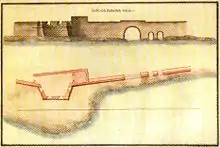 - "14º - Primeiro reducto da Ribeira secca. Tem duas canhoneiras e huma peça de ferro boa com o seu reparo capaz: carece de mais huma peça como seu reparo, e para se guarnecer precisa dois artilheiros e oito auxiliares."[4]