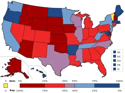 Durante 2003 a 2005, o Partido Republicano obteve maioria na câmara dos representantes e no senado, no senado 55 dos 100 senadores eram republicanos, e na câmara dos 435 representantes, 229 eram republicanos.