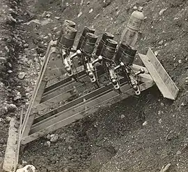 Em 1917, foi determinado que os cartuchos de calibre de fuzil padrão eram menos satisfatórios para destruir balões (derrubando balões de observação) do que calibres maiores carregando balas incendiárias ou traçantes. Os franceses adaptaram o cartucho 11×59mmR Gras padrão para disparar de sua metralhadora Hotchkiss M1914. Posteriormente, a metralhadora Vickers mais confiável e mais facilmente sincronizada foi adaptada para o cartucho, conhecida como "metralhadora de aeronaves Vickers" e às vezes o "destruidora de balões", que disparava o mesmo cartucho com balas incendiárias e correia de elos, o cartucho ficou conhecido como "11mm Vickers" no serviço britânico, por ser fabricado pela Vickers Limited. A metralhadora Vickers e o 11mm Vickers foram adotadas pelos aliados como armamento anti-balão padrão e usadas tanto pelos britânicos quanto pelos franceses nessa função até o fim da guerra, além de outros aliados como a Bélgica e os Estados Unidos. Usuários notáveis incluem o principal ás da aviação de caça da Bélgica e o "campeão dos aliados", o "destruidor de balões", Willy Coppens, e os dois ases da aviação com maior pontuação da América, Eddie Rickenbacker e Frank Luke.[1][4][5][13][14][15]