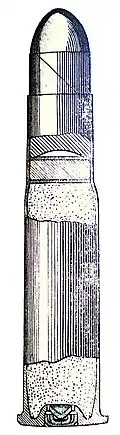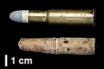 O cartucho original de 1874 disparava uma bala de chumbo comprimido, de 25,0 g (386 gr), 27 mm (1,06 pol) de comprimento, envolta por um "sabot" de papel, impulsionada por 5,2 g (81 gr) de pólvora negra de granulação "1F", gerando uma velocidade de saída de 450 m/s (1.500 pés/s), a velocidade caia para 430 m/s (1.400 pés/s) a 25 m (82 pés).[3]