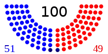 Durante o Congresso 110º, 49 senadores eram democratas e 49 eram republicanos, e dois independentes que apoiam o partido democrata.