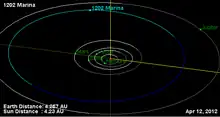 - «A órbita do asteroide 1202 Marina» (em inglês)