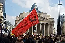 Protestos contra o G20 em frente à sede do Banco da Inglaterra, em abril de 2009.