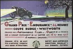 A primeira edição, com 33 concorrentes, desenrolou-se nos dias 26 e 27 de Maio de 1923 num circuito perto da cidade de Le Mans, no departamento da Sarthe. Hoje, as 24 Horas de Le Mans têm lugar cada ano em Junho. É a mais antiga e a mais prestigiada corrida de resistência para carros desportivos e protótipos.