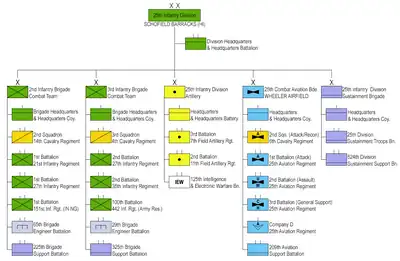 - Pike, John (13 de outubro de 2016). «25th Infantry Division / US Army Hawaii "Tropic Lightning"». Global Security.org (em inglês). Consultado em 5 de janeiro de 2024