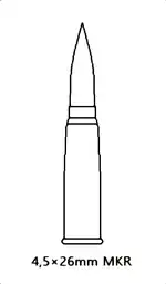 A curva balística e o desempenho geral do 4.5x26 MKR foi considerado semelhante ao do 5,56×45mm NATO com a bala "M-193" a até 300 metros. Seu projétil mais afilado de 4,5 mm podia penetrar em um capacete de aço até 300 m. Isso foi devido a uma combinação de velocidade ligeiramente maior, um coeficiente balístico Ingalls semelhante ao da bala M-193 (0,245 vs 0,265) e a capacidade de penetração superior das balas de cobre sólido laminado a frio vs balas de chumbo encamisadas, dada uma densidade seccional igual. Era potencialmente letal (80 Joules) até 750m e sua tendência a tombar no impacto era o dobro da bala 5,56 M-193, garantindo assim uma transferência mais eficaz de sua energia diminuta para o alvo, especialmente porque sua ponta tendia a dobrar. O alcance máximo foi de 2.500m.[2]