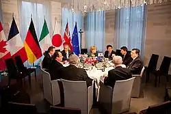 O G8 é um fórum internacional não-oficial que reúne lideranças das principais potências mundiais: Alemanha, França, Reino Unido, Itália, Japão, Estados Unidos e Canadá (desde 1976), a Comissão Europeia (desde 1981) e a Rússia (até março de 2014).[6] Quando os sete países decidiram não mais dialogar com a Federação Russa, a imprensa alcunhou o evento de "Cimeira do G7".