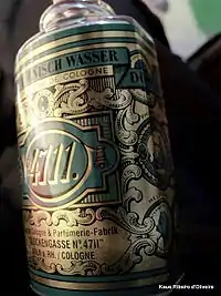 Tão só no terceiro livro de direções de 1797 menciona a Wilhelm Mülhens como habitante e é reconhecido com o nome "profissional de Loja de Especulações"; por outro lado, não é citado sob a denominação de fabricante de Água de Colónia no catálogo deste ramo.[5]